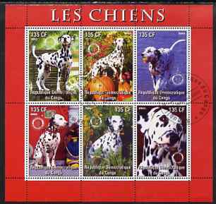 Congo 2003 Dogs (Dalmations) perf sheetlet #02 (red border) containing 6 values each with Rotary Logo, fine cto used