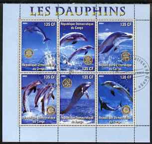 Congo 2003 Dolphins perf sheetlet #01 (vert stamps) containing 6 values each with Rotary Logo, fine cto used