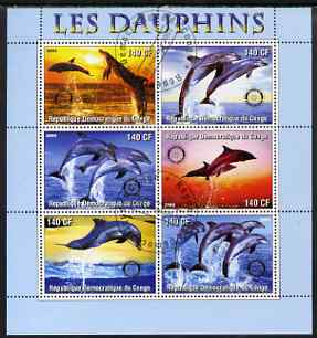 Congo 2003 Dolphins perf sheetlet #02 (horiz stamps) containing 6 values each with Rotary Logo, fine cto used