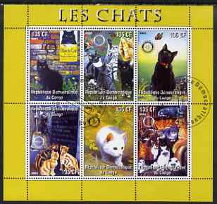 Congo 2003 Domestic Cats perf sheetlet #01 (yellow border) containing 6 values each with Rotary Logo, fine cto used