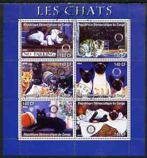 Congo 2003 Domestic Cats perf sheetlet #02 (blue border) containing 6 values each with Rotary Logo, fine cto used