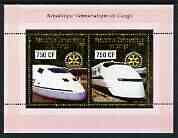 Congo 2003 High Speed Trains perf sheetlet containing 2 x 750 CF values with embossed gold background & Rotary Logo, unmounted mint