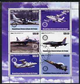 Congo 2003 Jet Aircraft perf sheetlet containing 6 x 135 cf values each with Rotary Logo, fine cto used