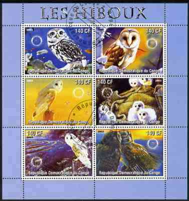 Congo 2003 Owls perf sheetlet #02 (blue border) containing 6 values each with Rotary Logo, fine cto used