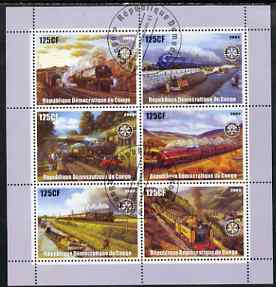 Congo 2003 Paintings of Steam Trains perf sheetlet containing 6 x 125 cf values each with Rotary Logo, fine cto used