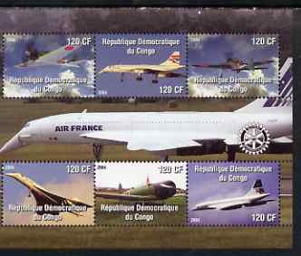 Congo 2004 Aircraft (incl BA Concorde) perf sheetlet containing 6 values, with Rotary Logo unmounted mint