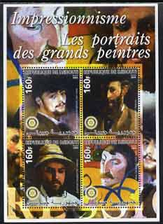 Djibouti 2005 Portraits of Impressionists #1 perf sheetlet containing 4 values each with Rotary Logo, unmounted mint