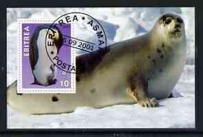 Eritrea 2001 Penguin & Seal imperf souvenir sheet (with Rotary Logo) fine cto used