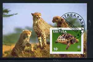 Eritrea 2001 Tortoise & Cheetahs imperf souvenir sheet (with Rotary Logo) fine cto used