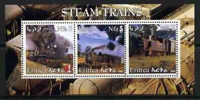 Eritrea 2002 Steam Locos #05 perf sheetlet containing set of 3 values each with Rotary Logo unmounted mint