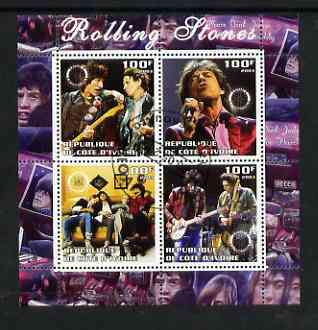 Ivory Coast 2003 Rolling Stones perf sheetlet containing set of 4 values each with Rotary International Logo cto used