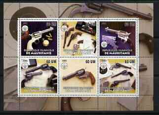 Mauritania 2002 Firearms #1 perf sheetlet containing 6 values each with Rotary logo, unmounted mint