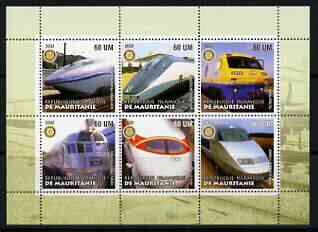 Mauritania 2002 Railway Locos #5 perf sheetlet containing 6 values each with Rotary logo, unmounted mint