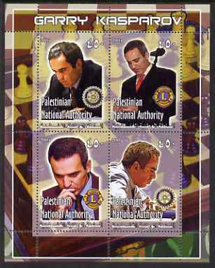 Palestine (PNA) 2005 Garry Kasparov perf sheetlet containing 4 values with Rotary & Lions Int logos, unmounted mint. Note this item is privately produced and is offered purely on its thematic appeal