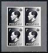 Cinderella - Great Britain 1936 KEVIII 1d block of 4 illustration in black on ungummed paper by Harrison & Sons produced during mid 1950's as a sample to illustrate the quality of gravure printed stamps - documented as 'designed s……Details Below