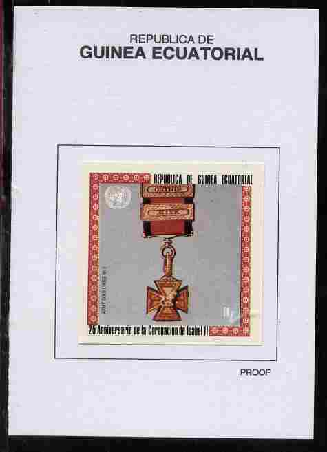 Equatorial Guinea 1978 Coronation 25th Anniversary (Medals) 1EK Army Gold Cross 1813 proof in issued colours mounted on small card - as Michel 1386