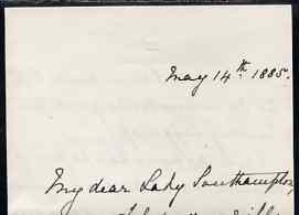 Great Britain 1885 Handwritten letter from PRINCESS BEATRICE on Buckingham Palace note-paper to Lady Southampton thanking her for a wedding gift - the Princess married Prince Henry of Battenberg later that year.,(Lady Ismay Southampton was Lady-in-Waiting to Queen Victoria from 1878 until her death in 1901 and close friend to the Princess)