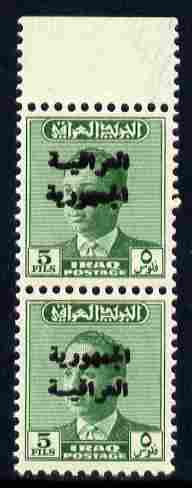 Iraq 1958-60 Republic Overprints 5f emerald vertical pair upper stamp with lines of overprint transposed unmounted mint, SG 447/a