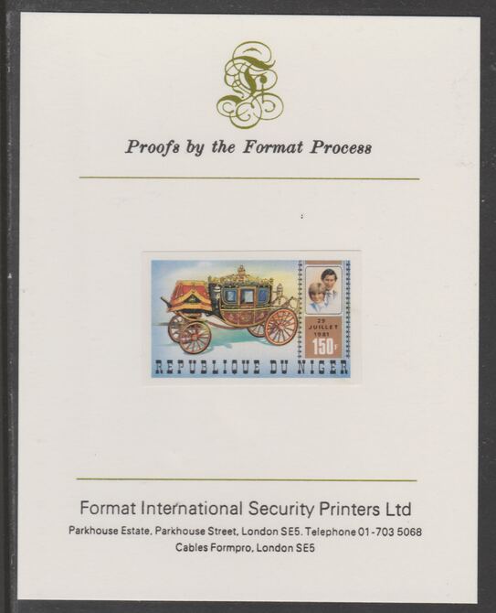 Niger Republic 1981 Royal Wedding 150f imperf proof mounted on Format International proof card, as SG 860