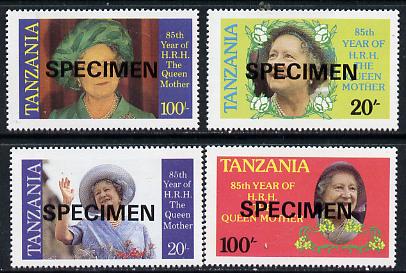 Tanzania 1985 Life & Times of HM Queen Mother perf set of 4 unmounted mint each inscribed in error 'HRH the Queen Mother' opt'd SPECIMEN*