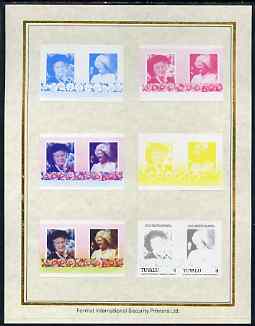 Tuvalu 1985 Life & Times of HM Queen Mother (Leaders of the World) $1 set of 7 imperf progressive proof pairs comprising the 4 individual colours plus 2, 3 and all 4 colour composites mounted on special Format International cards (7 se-tenant proof pairs as SG 340a)