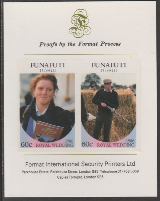 Tuvalu - Funafuti 1986 Royal Wedding (Andrew & Fergie) 60c imperf se-tenant proof pair mounted on Format International proof card