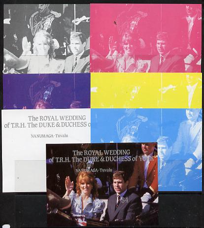 Tuvalu - Nanumaga 1986 Royal Wedding (Andrew & Fergie) $4 m/sheet set of 7 imperf progressive colour proofs comprising the 5 individual colours plus 2 composites unmounted mint. NOTE - this item has been selected for a special off……Details Below