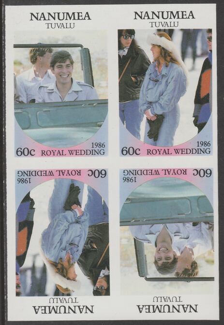 Tuvalu - Nanumea 1986 Royal Wedding (Andrew & Fergie) 60c imperf proof block of 4 (two se-tenant pairs) unmounted mint from an uncut proof sheet and rare thus