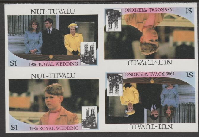 Tuvalu - Nui 1986 Royal Wedding (Andrew & Fergie) $1 imperf proof block of 4 (two se-tenant pairs) unmounted mint from an uncut proof sheet and rare thus