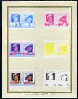 Tuvalu - Vaitupu 1985 Life & Times of HM Queen Mother (Leaders of the World) 40c set of 7 imperf progressive proof pairs comprising the 4 individual colours plus 2, 3 and all 4 colour composites mounted on special Format International cards (7 se-tenant proof pairs)