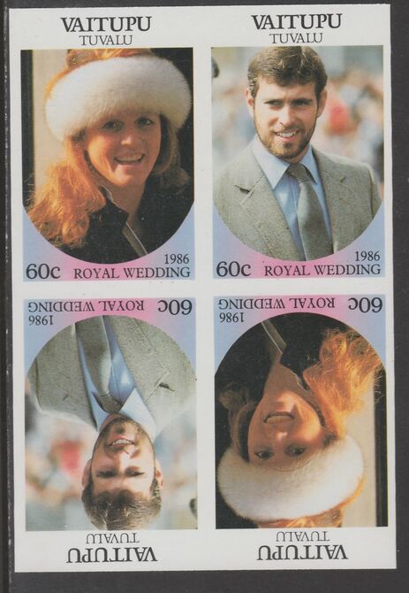 Tuvalu - Vaitupu 1986 Royal Wedding (Andrew & Fergie) 60c imperf proof block of 4 (two se-tenant pairs) unmounted mint from an uncut proof sheet and rare thus