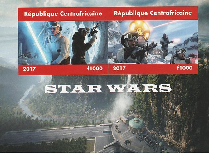 Central African Republic 2017 Star Wars #2 imperf sheetlet containing 2 values unmounted mint. Note this item is privately produced and is offered purely on its thematic appeal