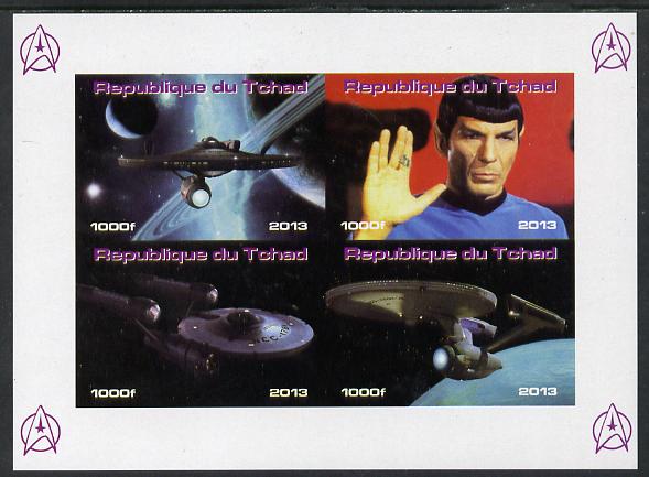 Chad 2013 Star Trek #3 imperf sheetlet containing 4 vals unmounted mint. Note this item is privately produced and is offered purely on its thematic appeal.