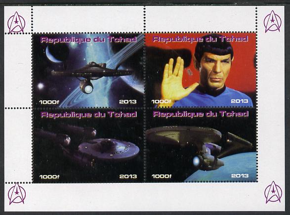Chad 2013 Star Trek #3 perf sheetlet containing 4 vals unmounted mint. Note this item is privately produced and is offered purely on its thematic appeal.