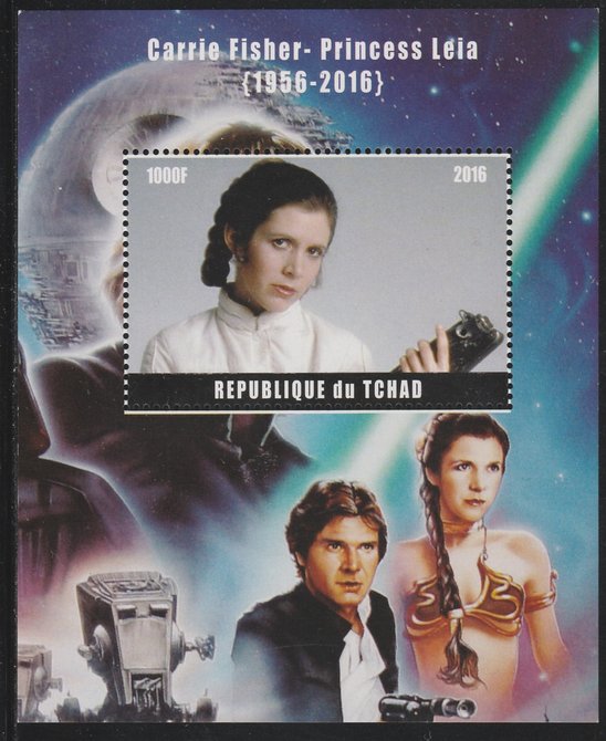 Chad 2016 Carrie Fisher perf s/sheet containing 1 value unmounted mint. Note this item is privately produced and is offered purely on its thematic appeal. .