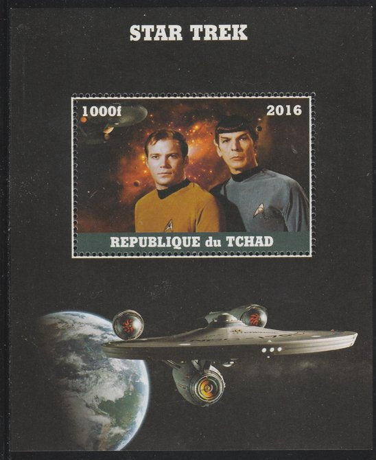 Chad 2016 Star Trek perf s/sheet containing 1 value unmounted mint. Note this item is privately produced and is offered purely on its thematic appeal. .