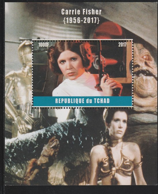 Chad 2017 Carrie Fisher perf s/sheet containing 1 value unmounted mint. Note this item is privately produced and is offered purely on its thematic appeal. .
