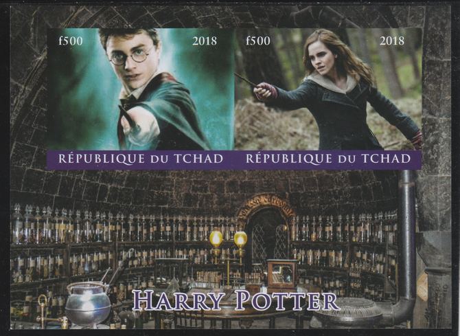 Chad 2018 Harry Potter imperf sheetlet containing 2 values unmounted mint. Note this item is privately produced and is offered purely on its thematic appeal. .