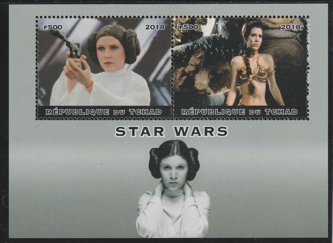 Chad 2018 Star Wars perf sheetlet containing 2 values unmounted mint. Note this item is privately produced and is offered purely on its thematic appeal. .