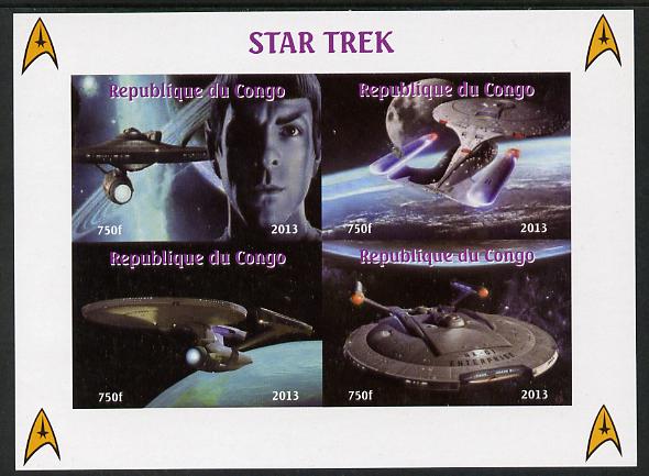 Congo 2013 Star Trek #1 imperf sheetlet containing four values unmounted mint. Note this item is privately produced and is offered purely on its thematic appeal