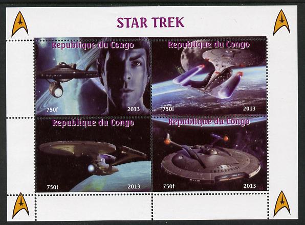 Congo 2013 Star Trek #1 perf sheetlet containing four values unmounted mint. Note this item is privately produced and is offered purely on its thematic appeal