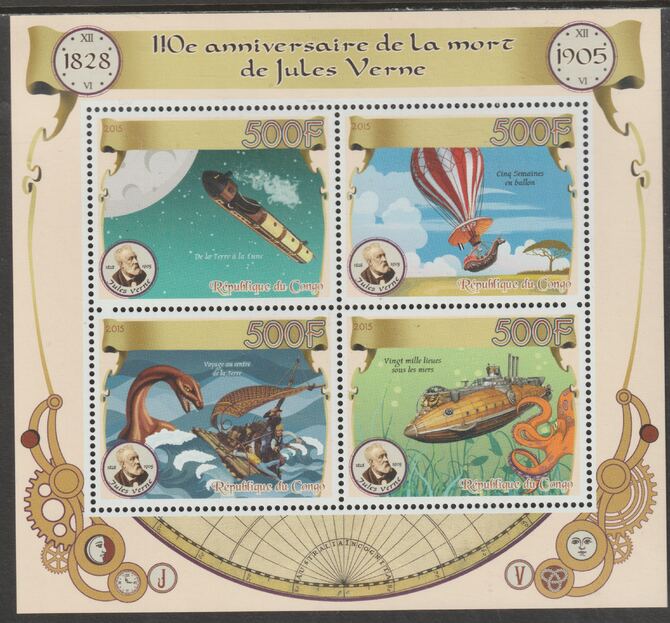 Congo 2015 Jules Verne - 110th Death Anniversay perf sheet containing four values unmounted mint