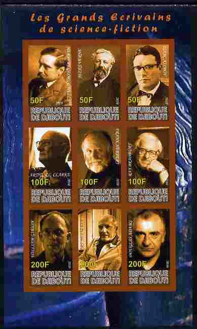Djibouti 2010 Science Fiction Writers imperf sheetlet containing 9 values unmounted mint