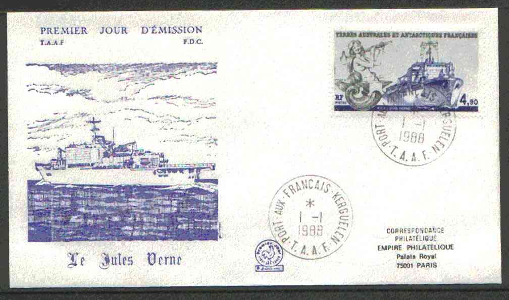 French Southern & Antarctic Territories 1988 Jules Verne (Survey Ship) on illustrated cover with first day cancel, SG 238
