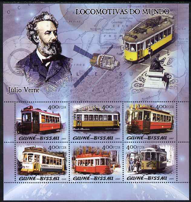 Guinea - Bissau 2005 Trams & Jules Verne perf sheetlet containing 6 values unmounted mint Mi 3022-27