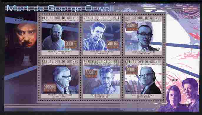 Guinea - Conakry 2010 Death Anniversary of George Orwell perf sheetlet containing 6 values unmounted mint, Michel 7725-30