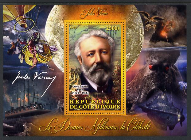 Ivory Coast 2013 Celebrities of the last Millennium - Jules Verne perf deluxe sheet containing one rectangular value unmounted mint