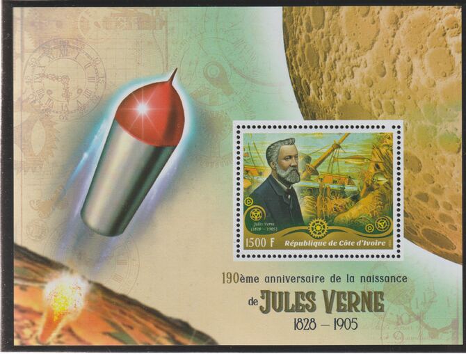 Ivory Coast 2018 Jules Verne 190th Birth Anniversary perf m/sheet #1 containing one value unmounted mint