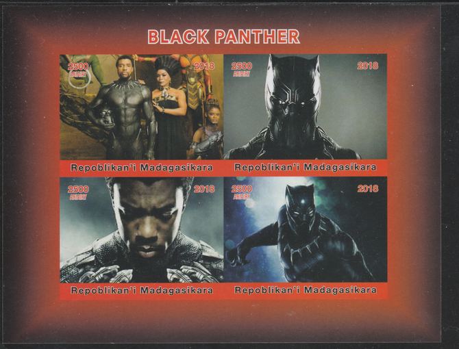 Madagascar 2018 Black Panther imperf sheetlet containing 4 values unmounted mint. Note this item is privately produced and is offered purely on its thematic appeal.