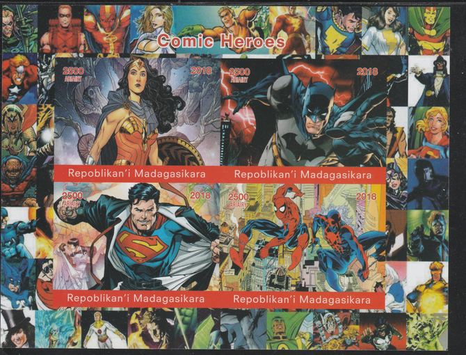 Madagascar 2018 Comic Heroes #2 imperf sheetlet containing 4 values unmounted mint. Note this item is privately produced and is offered purely on its thematic appeal.
